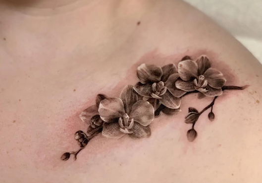 Kimmie Wesson began her tattoo journey at a young age, starting her apprenticeship at just 18. Passionate about art and eager to turn her dream into a career, she was encouraged by her high school art teacher, Mr. Scott to pursue tattooing—a perfect fit for her lifelong love of tattoos, inspired by watching shows like Ink Masters and Tattoo Nightmares with her father.